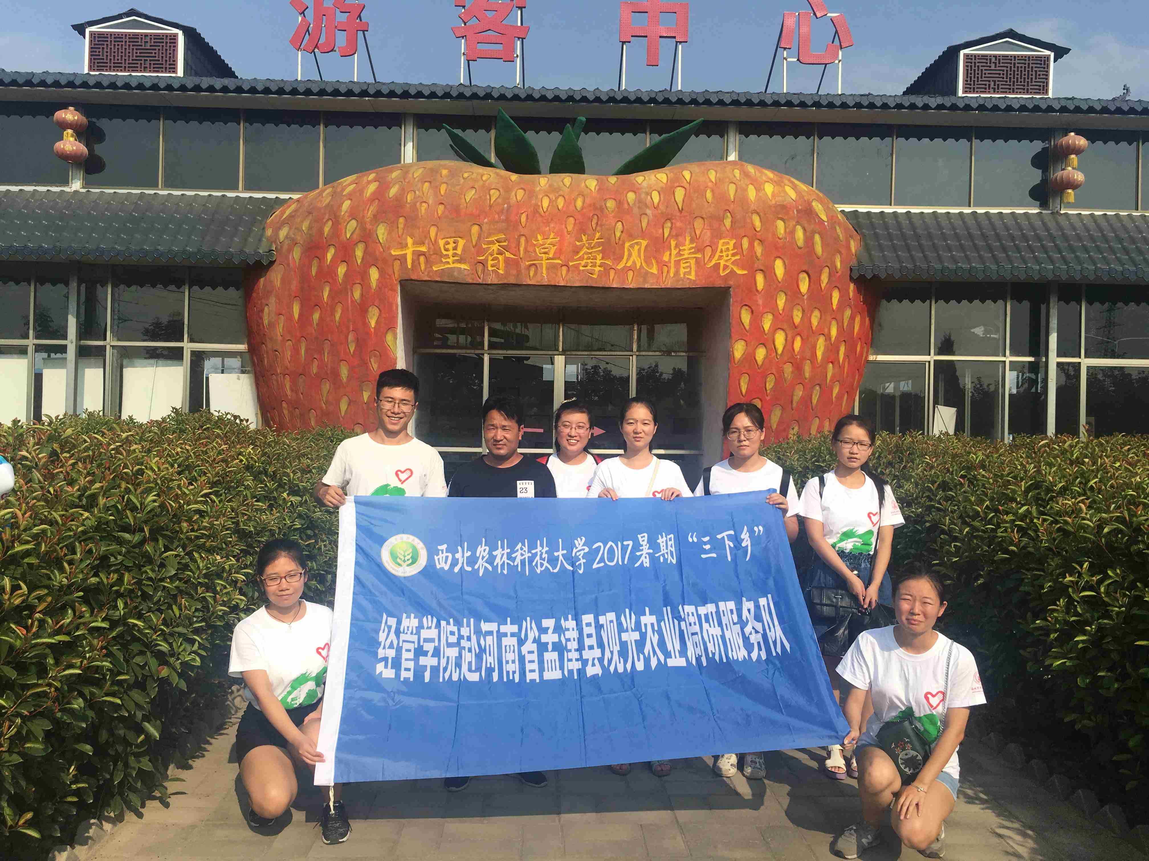 为了更好了解关于观光农业的发展情况,了解观光农业的运行模式,将学到的农业经济知识与实践相结合,更好的服务于我国的农业现代化。8月6日,西北农林科技大学经管学院组织“经管学院赴河南省孟津县观光农业调研服务队”来到了孟津县“十里香”观光农业生态园进行考察,工作人员热情的招待了团队。团队根据事先已经掌握的资料,询问工作人员该园的基本情况,发展态势以及存在的问题,得到了详细的解答,收益良多。