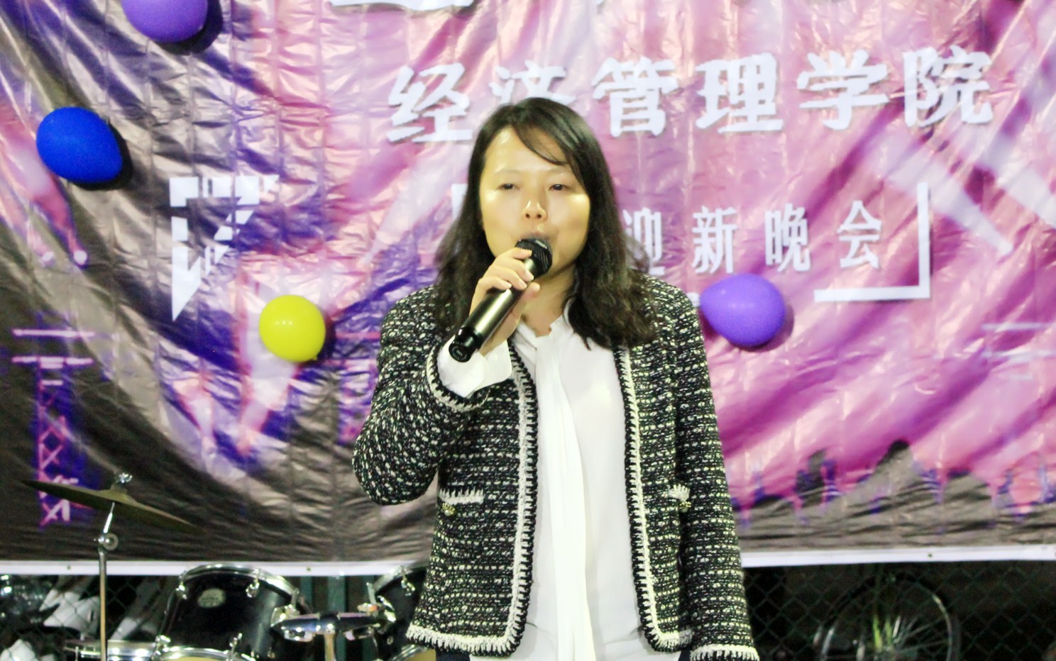 一曲青春洋溢的的架子鼓演奏拉开了晚会的序幕。紧接着表演的街舞、歌曲成功地调动了现场气氛。随后院长赵敏娟致辞,对2017级全体新生表示热烈欢迎,并且表达了对同学们新学年的殷切期望。同时,赵敏娟院长向学生发放了慰问品。