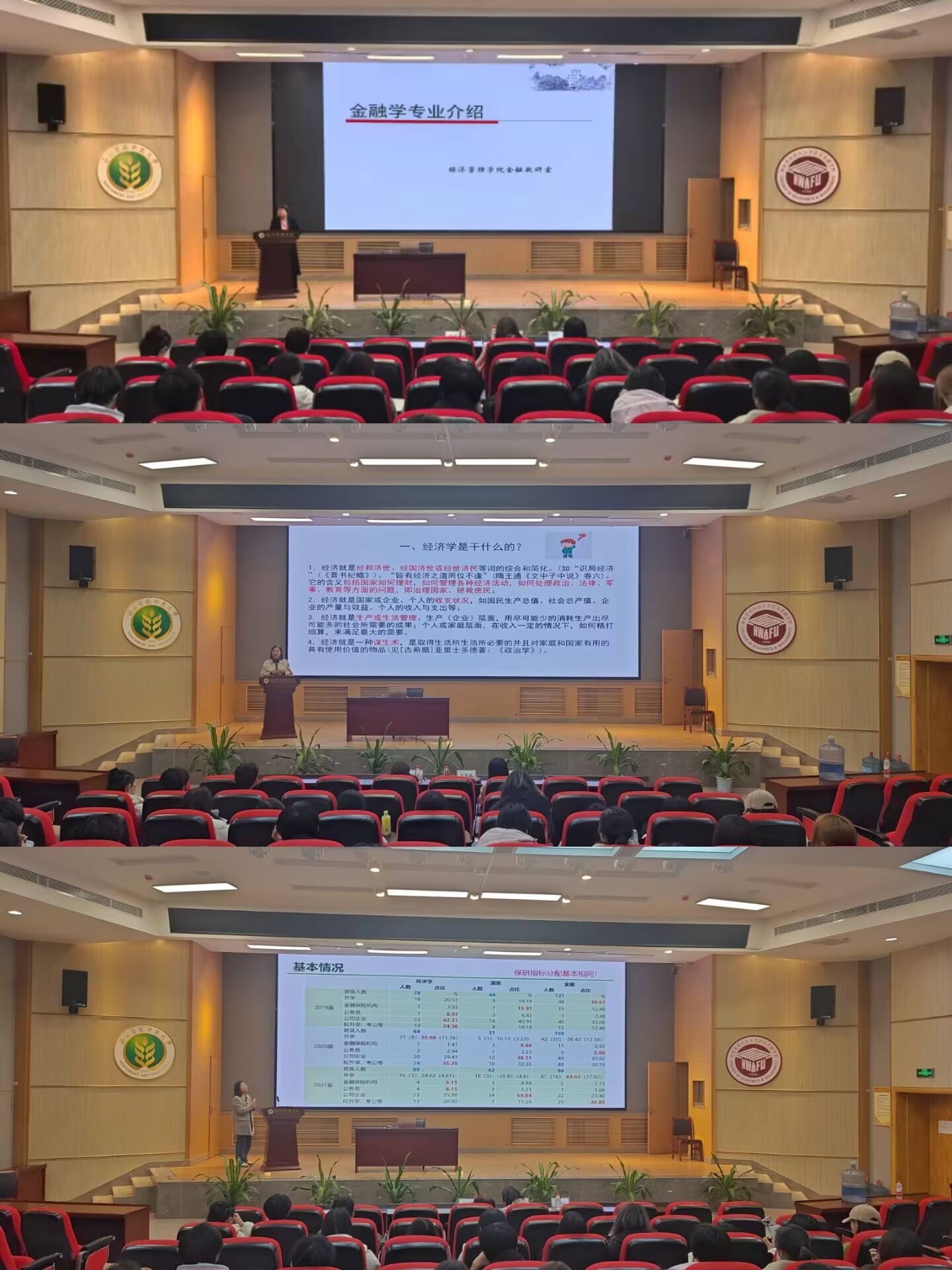 董春柳老师从专业定位、课程体系及就业前景切入,强调该专业以“国际视野”为核心,注重培养跨境贸易、国际金融等领域的复合型人才。紧接着姜雅莉老师系统介绍了经济学专业的研究方向与培养目标,她提到当前经济转型背景下,扎实的理论功底与数据分析能力将成为核心竞争力。最后杜君楠老师通过讲解金融学的应用特性,分析了解到金融学专业毕业生可在银行、证券等金融机构从事投资分析、风险管理等工作。