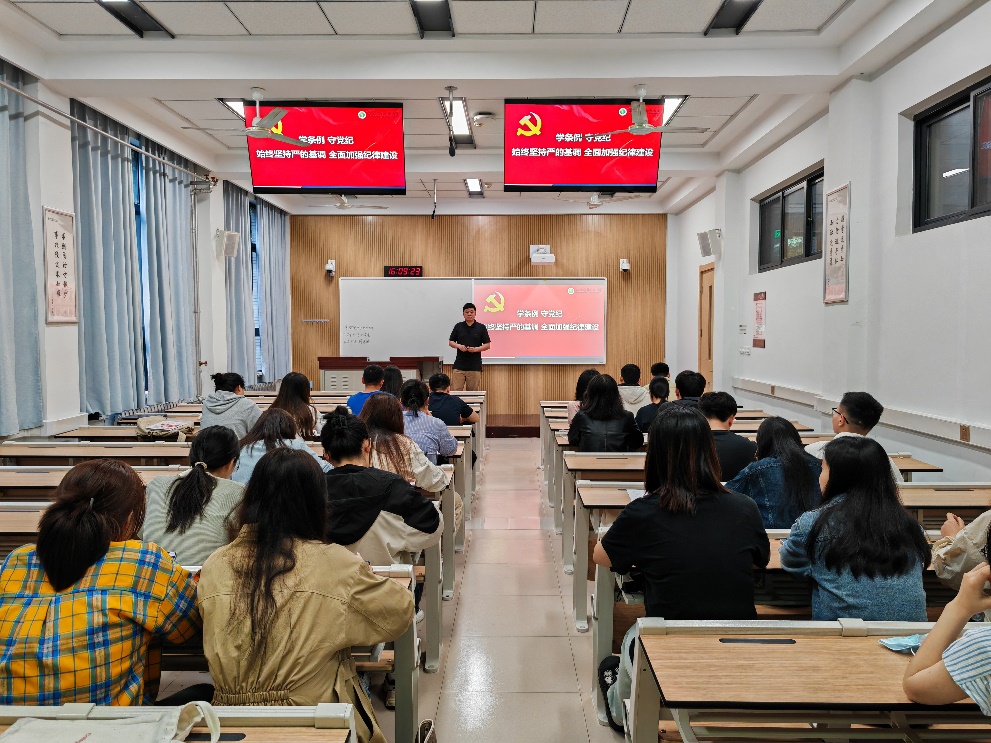 为认真贯彻落实党纪学习教育要求,巩固党纪学习教育成果,农业管理专硕第三党支部于5月29日下午在一号教学楼S1102召开支部书记讲党课暨党纪专题理论学习会。会议由支部书记闫泽禹主持,支部全体党员、入党积极分子参加会议。