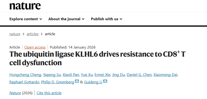 开年重磅突破!beat365官方网站系统医学研究院/苏州系统医学研究所李贵登团队《自然》发文,解锁T细胞耗竭分化新机制