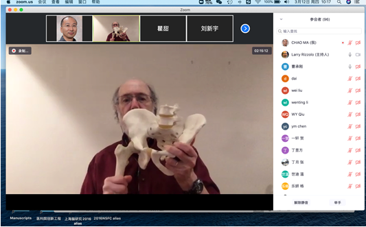为了加强国际交流,推进教学改革,秉承每门课有国际名师授课的原则,基础学院人体解剖与组胚学系按照院校 “停课不停学”的要求,邀请我校客座教授、美国耶鲁大学医学院解剖教学主任Lawrence Rizzolo 教授于2020年3月12日上午10点(美国东区晚上22点)利用ZOOM平台给临床医学八年制2017级学生带来了一场生动形象的线上教学 。