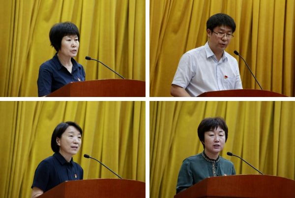 三位院校先进典型代表作事迹报告。报告人药植所孙晓波同志曾荣获2016年首都劳动奖章、2018年北京师德先锋称号,他在题为《不忘初心、牢记使命,助力精准脱贫攻坚》的报告中,讲述了在助力精准扶贫事业中作出的不懈努力。报告人阜外医院王旭同志曾荣获2017年全国卫生计生系统先进工作者、2017年“中国好医生、中国好护士”月度人物称号,她在题为《践行初心使命,做先心病患儿的“满分妈妈”》的报告中,讲述了自己以三十年如一日的工作,对不畏艰难、勇于开拓、无私奉献的阜外精神的积极诠释。报告人协和医院谢海燕同志,是协和医院五官科团总支眼科团支部书记,该眼科病房被国家卫健委推荐为“2017—2018年度中央和国家机关青年文明号”称号,她在题为《不忘初心,坚守光明》的报告中,讲述了眼科年轻医务人员以“心之所系、国之所需,党旗所指、青春所向”为座右铭,在服务患者、援外医疗、科普义诊和科技创新等方面所留下的坚定足迹。