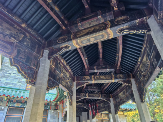 弧形廊因曾被改造成办公场所而加顶棚,内檐彩画隐藏其中。这次修缮,团队下决心拆除搭建建筑,遗存的民国初年彩画重见天日。
