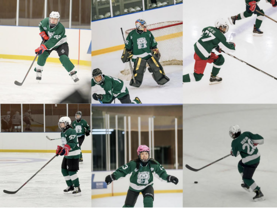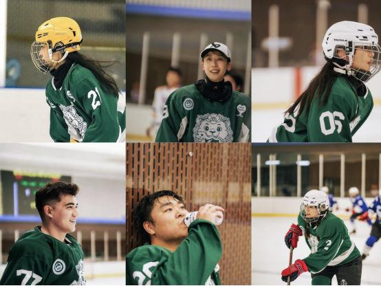 黄琳萱:第一次真正感受到冰球比赛的速度和热度,原来笨拙也能这么热血。第一次上场就摔得一身伤,但也在队友的笑声里感受到短暂却真实的归属感。希望还有下一次!