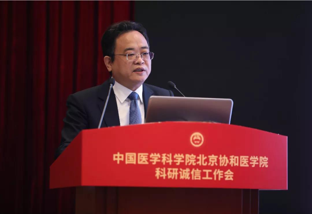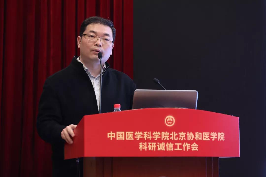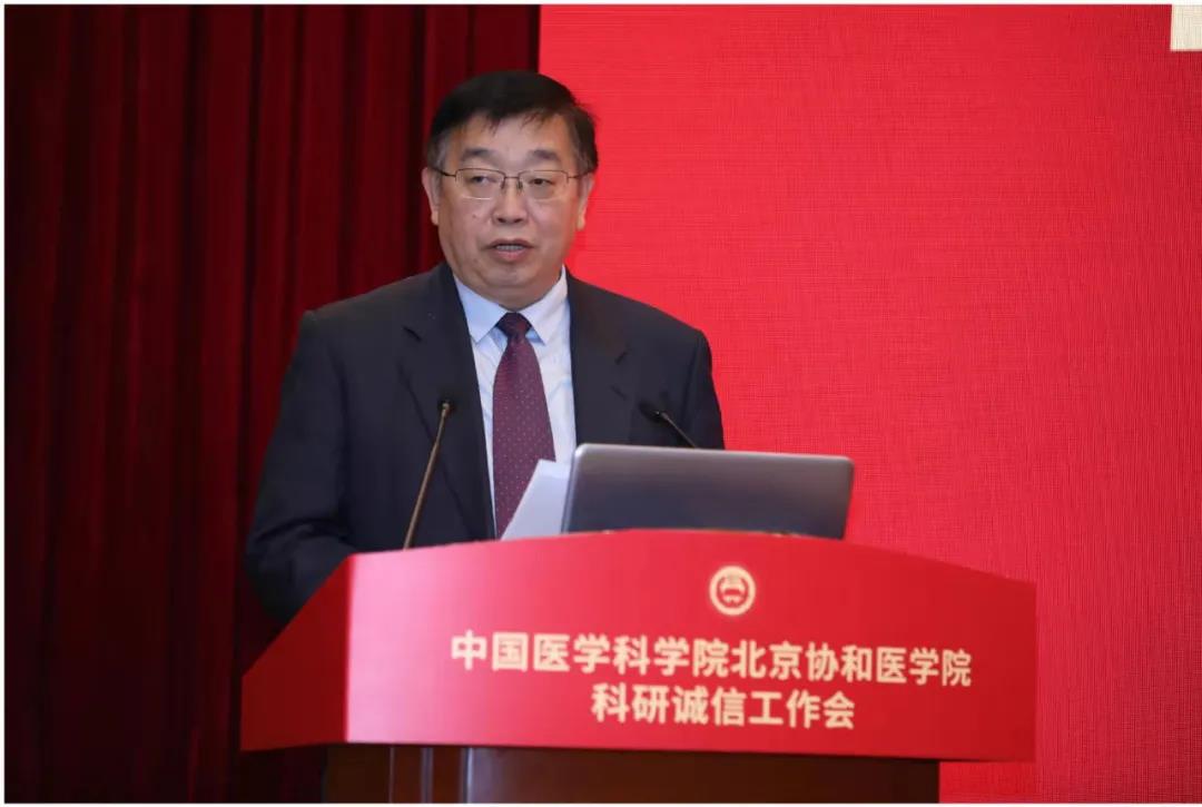 王辰院校长发表讲话,指出科研诚信是科技之要、医学之要。院校正在大力推进国家医学科技创新体系核心基地建设,这一举措担负着民族的期望,代表着医学的方向,必须遵循务真、求实、诚实、守信等做学问的基本要求。院校及各所院要加强科研诚信建设和管理,全面构建“不敢、不能、不想”的体制机制。“不敢”,就是要健全惩戒制度,做到屡教必诛;“不能”,就是在机制审核、程序安排、质量控制等方面有效把握;“不想”,就是根据自身能力做一个寓高贵于朴实的科技工作者,这是科研诚信建设的根本。诚信问题是一个院校上下需要真正在意的问题,应共同维护院校在医学界的标杆性、导向性地位,使协和成其协和,医科院成其医科院。