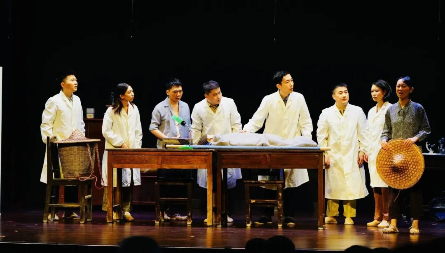 大会在庄严肃穆的国歌声中展开序幕,随后院校师生表演了思政年活动的优秀成果——原创舞台思政剧《顾方舟》,回顾了以“人民科学家”顾方舟为代表的院校科研工作者们研发脊髓灰质炎疫苗的历程,展现了他们吃苦耐劳、勇于探索、甘于奉献、科研报国的感人事迹和崇高精神,深深感动了在场来宾。