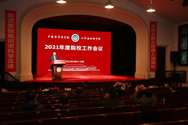 会议指出,2021年是中国共产党成立100周年,也是国家现代化建设进程中具有特殊重要性的一年,“十四五”将由此开局,全面建设社会主义现代化国家新征程由此开启,做好2021年院校工作意义重大,院校上下要始终以习近平新时代中国特色社会主义思想为指导,认真贯彻习近平总书记“努力把beat365官方网站建设成为我国医学科技创新体系的核心基地”的重要指示精神,全面部署并贯彻落实年度重点工作:第一,实现核心基地建设第一步发展目标,从软硬实力双提升入手,初步建成医学研究和医学教育核心基地架构。第二,制定清晰的院校“十四五”及中长期发展规划,千锤百炼谋划院校发展行动纲领,明确院校目标定位,努力建设成为兼备国际先进性与国情适用性的医学教育研究机构。第三,整合院校教育、教学、科技资源,在准聘长聘教职和临床医学教职体系下强化学院与学系管理,加强学科体系建设,梳理教育、教学与教务现状形成新的体系、机制。第四,启动召开中国医学发展大会,组织学术咨询委员会学部委员为国家医学卫生健康事业发展提供战略咨询和智力支撑,打造“智库国家队”,综合研讨院内外研究体系建设,强化院内平台基地的管理,布好、选好、管好、用好院外研发机构。第五,加强医院行业和领域标准制定,构建标准化名词、结构化病历,建立临床信息系统,整合全国医疗体系信息,完善以电子病历为核心的临床信息系统。第六,立足长远推进院校专科医院向突出有专科特色的综合医院转型,抓住发展先机,克服转型难点。第七,继续发布中国医学重大进展,展示卫生健康研究成果,引导医学科技创新;发展科技量值评价(STEM)体系研究,在医院、学校STEM基础上研究团队、个人科技量值评价体系。第八,升级院校科技创新工程,优化重构实施路径,有效支撑核心基地建设。第九,加快推进北区建设及所院各项基建项目进度,全力实现预期目标,为核心基地建设拓展空间资源。第十,推动院校党委换届工作完成,进一步加强院校干部工作、人才队伍建设工作,真正选用德才兼备、履职担当的优秀干部,营造创业、发展的管理体制机制,为院校科技、医疗、教育人才搭建事业发展平台。