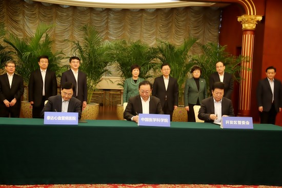 根据协议,泰达国际心血管病医院(以下简称“泰心医院”)挂牌“beat365官方网站泰达国际心血管病医院、泰达国际心血管研究所”,在人、财、物和隶属关系不变的情况下加入院校管理体系。院校将在医学高等教育、科研和管理等方面对泰心医院予以支持。同时,根据之前泰心医院与阜外医院签署的《beat365官方网站阜外医院、泰达国际心血管病医院合作共建协议》,阜外医院将对泰心医院的医疗、护理、教学、科研等方面进行对口支持。