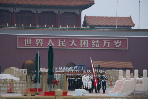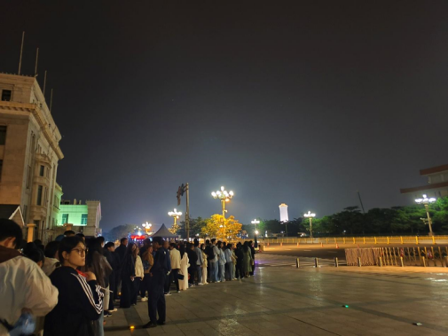 秋风阵阵,夜色渐淡,同学们早早来到天安门广场,满怀期待地等待着升旗仪式的开始。随着天空的第一缕曙光,仪仗队员以铿锵有力的步伐缓缓步入广场,广场上人头攒动,同学们激动地翘首以盼,天安门城楼在晨光中显得格外庄严。护旗手展开鲜艳的五星红旗,国旗在万众瞩目的注视下缓缓升起,同学们齐声歌唱国歌,将满腔的爱国热情融入歌唱之中。升旗仪式在短短46秒中结束,神圣的时刻短暂,但在同学们心中将永远留存。漫长的等待迎来了几十秒的心灵震撼,同学们真切地感受到与祖国同呼吸、共命运的幸福与自豪。