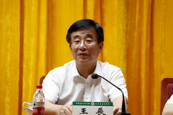 王辰院校长代表院校表态,将坚决拥护和服从委党组的决定,认真落实委党组要求及曾益新副主任的讲话精神,以此为新的起点,团结协作,勇于创新,加快推进国家医学科技创新体系核心基地和世界一流医学院校建设,围绕中心,服务大局,为加快健康中国建设,实现两个百年目标和中华民族伟大复兴作出新的更大的贡献!