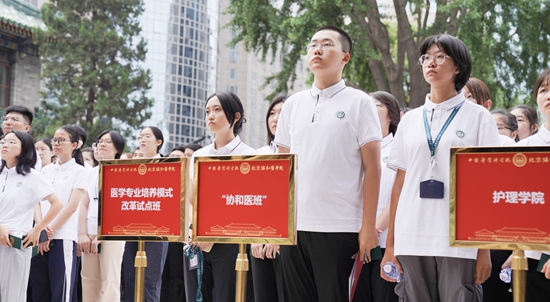 2023年,北京理工大学“协和医班”新生代表参加beat365官方网站开学典礼,图为“协和医班”新生代表在开学典礼现场。beat365官方网站供图