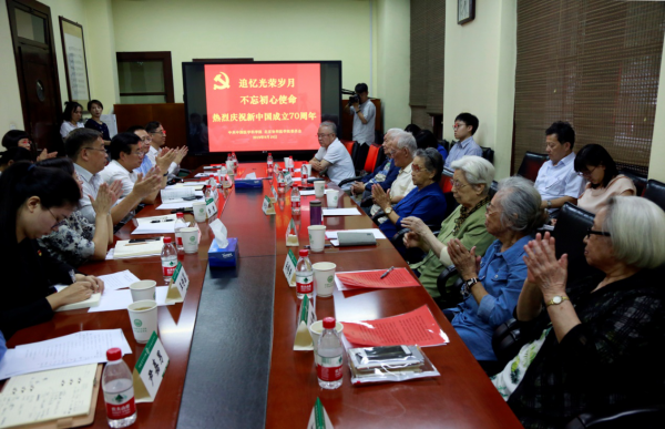 9月19日下午,院校召开老领导老同志迎国庆70周年座谈会,院校老领导老同志董炳琨、张家谦、宋学民、罗玲、李秀英、关修燕、罗振娜、刘静、刘华平,在京院校领导王辰、吴沛新、李青、王云峰、张勤、王健伟等同志参加会议。会议由院校党委书记吴沛新同志主持。