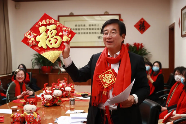 旧岁已展千重锦,新年更进百尺杆。2021年2月9日下午,院校创新举办线上团拜会,院校领导、各所院领导班子成员和干部职工代表,各学院、机关各部门负责人“云”聚一堂,喜迎新春,恭贺佳节,互赠庚子牛年祝福。在温暖祥和气氛中,王辰院校长充分肯定了过去一年院校及各所院在国家医药卫生领域发挥的领衔角色、完成的国家多项重要任务,感谢院校各位同仁长久以来的辛勤付出以及戮力同心、夙夜为公的奉献精神。新的一年,院校将继续围绕医学科技创新体系核心基地建设目标脚踏实地、奋楫笃行,在文化、学科、管理、人才等方面积极谋划,在临床、科研、教学、产业等方面更创新高,进一步强化核心竞争力,再开新局,再立新功,推进院校发展再上新台阶。十九家所院在分会场积极参与本次团拜会,形式多样,异彩纷呈,同时对院校及兄弟所院之间长久支持及关怀表示感谢、互道祝福。