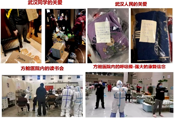 阜外医院 2013 级毕业生车武强,作为中日友好医院第四批援鄂抗疫医疗队的队员,讲述了在援助武汉期间的一个个充满温情的故事,描绘了一帧帧扣人心弦的画面,为大家展示了疫情背后的另一面——疫情下的爱。那些画面中有热爱生活的50岁阿姨为病友们演奏二胡,有为打发闲暇时间互相鼓舞的方舱读书会,有热爱学习的小少年在方舱小书桌上写下的“献给最可爱的人”的一封信,有带着“强大康复信念”的方舱内集体呼吸操,有特殊情人节来自前线和大后方的爱……大家纷纷表示“湿了泪框”,更加坚定为医学事业奋斗终生的决心。