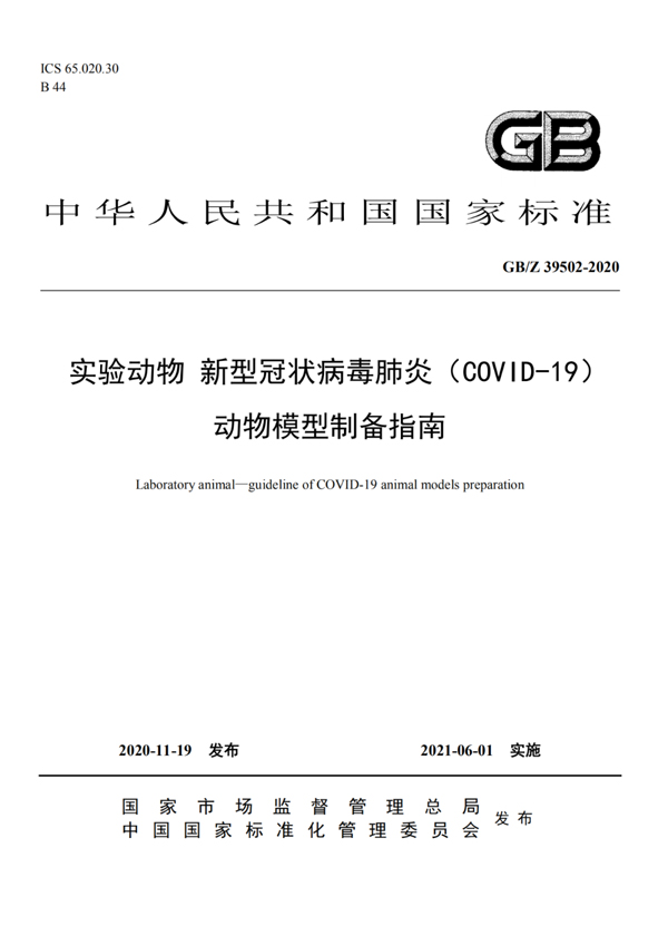 此外,由动研所编制的与该文件配套的团体标准《实验动物新型冠状病毒肺炎(COVID-19)动物模型制备技术规范》(标准号:T/CALAS 98-2020)规定了模型制备过程各环节的技术操作规范,已于2020年12月1日由中国实验动物学会正式发布,2021年1月1日开始实施。