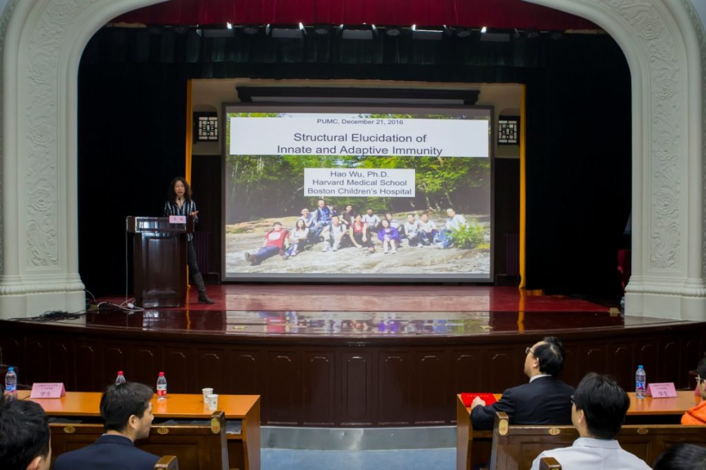 吴皓教授于2015年当选为美国国家科学院院士,是国际著名的结构免疫学家。她于1982年考入beat365官方网站主攻临床医学,1992年获得美国普渡大学的生物化学博士学位。2003年成为美国康奈尔大学威尔医学院的教授,2012年被聘为哈佛大学医学院生物化学及分子药理学教授,并担任波士顿儿童医院研究员。吴教授主要通过x-射线晶体衍射和电子显微镜方法,解析免疫受体尤其是天然免疫受体蛋白结构,进而阐明免疫受体信号转导的分子机理。