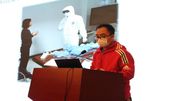 院校援鄂抗疫医疗检测队队员、阜外医院西山园区党总支第一党支部国家重点实验室青年党员徐传胜同志与大家分享了自己的抗疫心路历程以及在武汉方舱医院的全部工作:从搭建移动实验室到摸索实验室工作流程,从负压环境诱发哮喘仍坚守岗位50天到胜利休舱后撤离等。