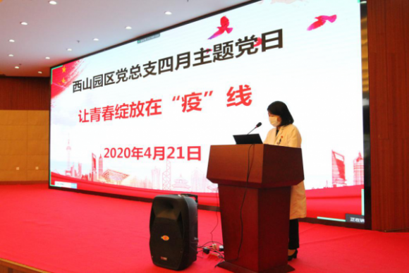 4月21日,阜外医院西山园区党总支开展“让青春绽放在‘疫’线”主题党日活动暨院校援鄂抗疫医疗检测队队员徐传胜同志抗疫工作分享会。活动通过现场参与和线上直播的形式进行,阜外医院西山园区党总支书记张雪燕同志主持。