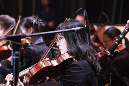 《日不落》、《Sparks Fly》、《天空没有极限》与《野蔷薇》歌曲表演时,场内观众一同挥舞荧光棒喝彩,在耳熟能详的旋律中感受音乐的力量。爱乐乐团带来《Love》的交响乐,柔和的灯光营造出温馨氛围,动人的旋律传递细腻的情感,“爱”的视听盛宴令人陶醉。