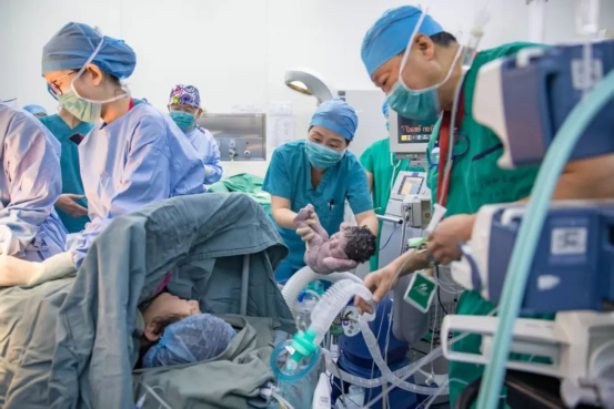 黄宇光(右一)为分娩产妇实施麻醉镇痛