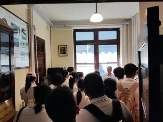 协和解剖学系曹承刚老师带领同学们参观解剖楼,讲述著名的“北京猿人”化石是由协和解剖系步达生教授从解剖学角度做出的权威鉴定,首位向协和医学院捐献遗体的中国人文学泰斗顾颉刚先生的无私大爱,并介绍解剖学知识对药学科学研究的重要意义,教导同学们要深怀崇敬之心,扎实学识,为人类健康事业做贡献。