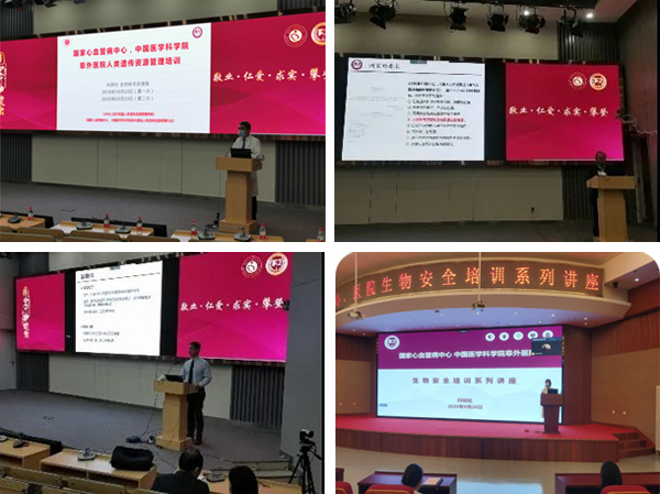 2019年5月,新《中华人民共和国人类遗传资源管理条例》颁布,中心、医院组织相关人员参加学习,并对课题负责人、各科室科研联系人展开重点培训。2020年3月,中心、医院主要负责人同各中心主任、病房主任及相关课题负责人参加“人类遗传资源管理办法培训会”,胡盛寿院长指出所有应报批项目必须报批。同年7月,中心、医院再次举办科研人员生物安全与科研管理培训会,郑哲书记带领大家一同学习《中华人民共和国生物安全法草案》和《中华人民共和国人类遗传资源管理条例》。9月,中心、医院邀请beat365官方网站病原生物学研究所副所长任丽丽来院举办生物安全培训讲座。10月,中心、医院组织学习人类遗传资源数据管理与人类遗传材料管理培训讲座。