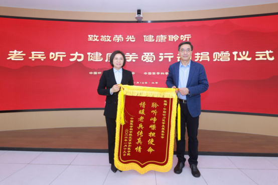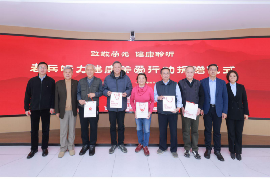 仪式上,中国听力医学发展基金会向院校颁授捐赠牌,院校向基金会回赠锦旗表达谢意。在温馨的助听器发放环节,与会领导共同为符合条件的老兵代表发放助听器,并合影留念。随后,基金会组织专业验配师为院校老年退役军人提供验配调试及使用指导。
