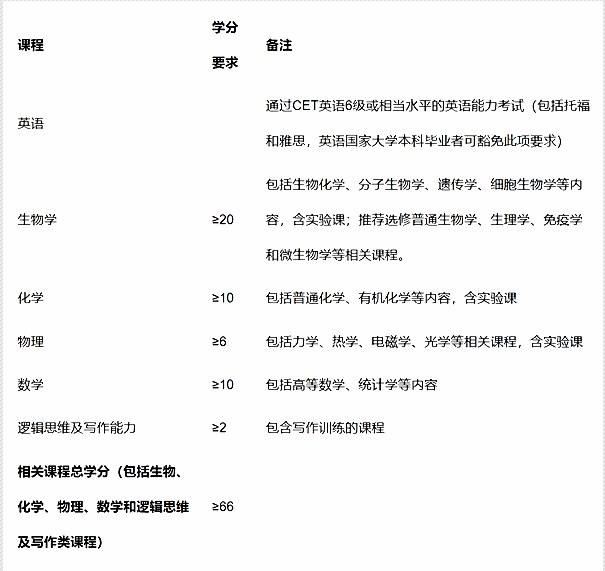 (2)学科基础宽厚:推动医学教育与多学科融合是临床医学试点班在中国医学教育领域的关键突破和重要尝试,为实现各学科思想在试点班充分交流、融会贯通的良好效果,参与学生应具有宽厚学科基础、学习新事物的热情与终身学习的能力