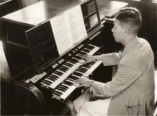 1939年,协和医院大夫张光璧演奏管风琴。医学院供图