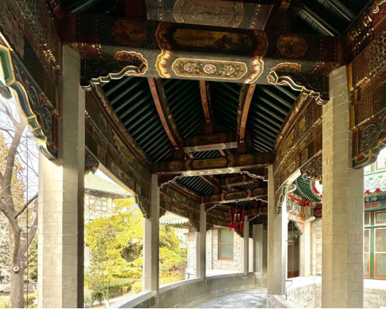 百年间,无数大家也曾这样从院落中经过,一来一往,就奉献了一生。行走在九号院内,随处可见的中西合璧建筑令人称奇,但最值得一提的,莫过于3号楼东西两侧弧形廊内至今保留着建筑初建时期的彩画,而这背后还有一个鲜为人知的故事。