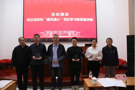 经现场评比,选出一二三等奖4名,优秀奖4名。彭小忠所长、邓巍书记为获奖选手颁发奖杯。石英杰、姚楠、程陈恩泽、姜林成为动研所纪委“廉风清心”党纪学习教育宣讲团成员,郭建国、苏磊、李祥磊、安歆加入宣讲团后备队伍。