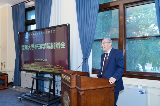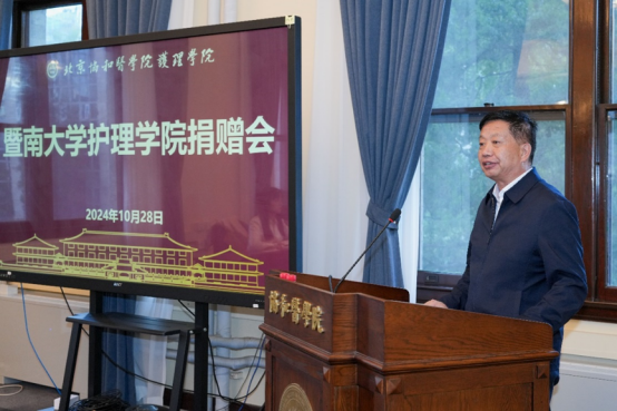 院校原党委副书记、历史研究与文化建设项目办公室主任王云峰在讲话中肯定了黄爱廉先生为我国护理事业的卓越贡献。她1941年从协和护校毕业后,作为中国护理界的泰斗,其一生致力于护理教育的改革与创新,为我国护理教育的发展做出突出贡献。先生将校徽捐献母校,为协和院史馆增加了厚重的历史资料,为我们研究协和百年历史提供了珍贵的元素,是协和精神的传承,激励着我们以更加饱满的热情投入到我国护理教育事业改革发展中去。