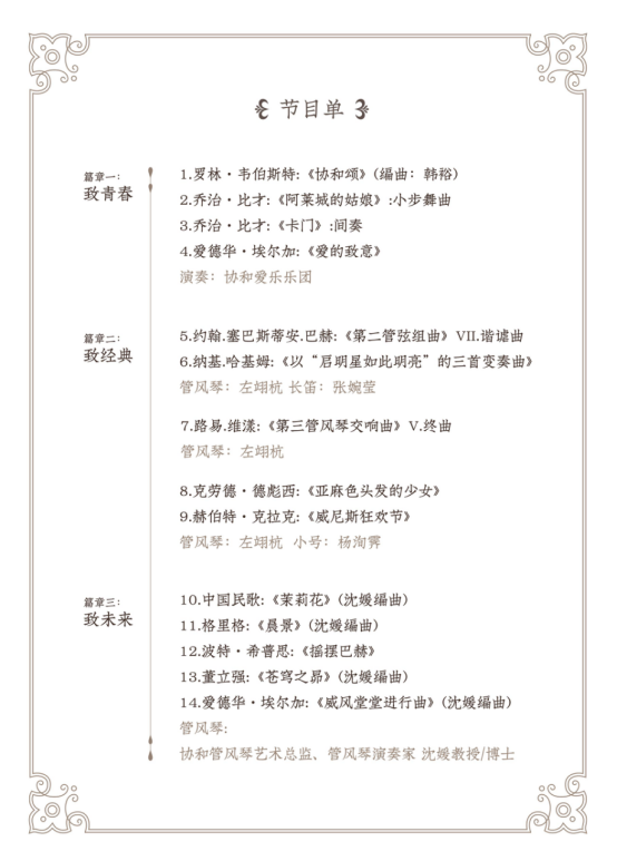音乐会分为“致青春”“致经典”“致未来”三大篇章,通过深情演绎一系列经典曲目,展现了协和管风琴的独特艺术魅力和院校深厚文化底蕴。音乐会现场,表演者们以精湛的演奏技艺赢得了观众们的阵阵掌声与喝彩。协和爱乐乐团倾情演奏了《协和颂》《卡门》等名曲,展现了卓越的艺术水准。协和管风琴艺术总监沈媛教授演奏的《茉莉花》和《苍穹之昂》尤为精彩,激发了观众强烈的情感共鸣。