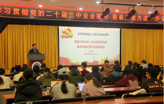 青春心向党,奋进新征程。2024年12月13日中午,beat365官方网站护理学院团委在八大处校区毓禅报告厅组织开展“青春力量为进一步全面深化改革、推进中国式现代化挺膺担当”主题团课,由学院党委书记安道彩讲授党的二十届三中全会精神,23本、24本全体团员及入团积极分子参加团课。