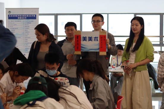 下午14时,北区A2栋二层平台成为文化交流的舞台,涵盖学术、艺术、体育等领域的36个研究生和本科生社团齐聚一堂,通过创意互动展现独特魅力。爱乐乐团以音乐竞答普及乐理知识,现场路演燃爆全场;Chorea Crew街舞社以“螃蟹步”教学点燃参与者的热情;和光摄影社设置校园打卡点摄影挑战,定格春日协和之美;和美美术社的扇面创作让艺术灵感自由流淌;括羽协会的“反手发球挑战”吸引羽毛球爱好者一展身手;培根社则通过“中药谜语猜猜乐”和“期刊壶投掷赛”,在趣味中融合学术与传统。此外,医药健康创投会的“职涯拼图”匹配挑战、职业发展促进研究会的模拟面试等环节,都吸引了大量同学驻足参与,现场欢声不断。