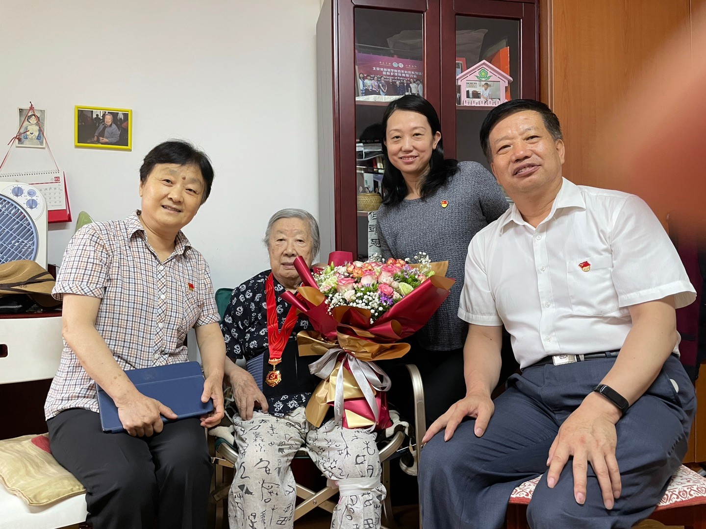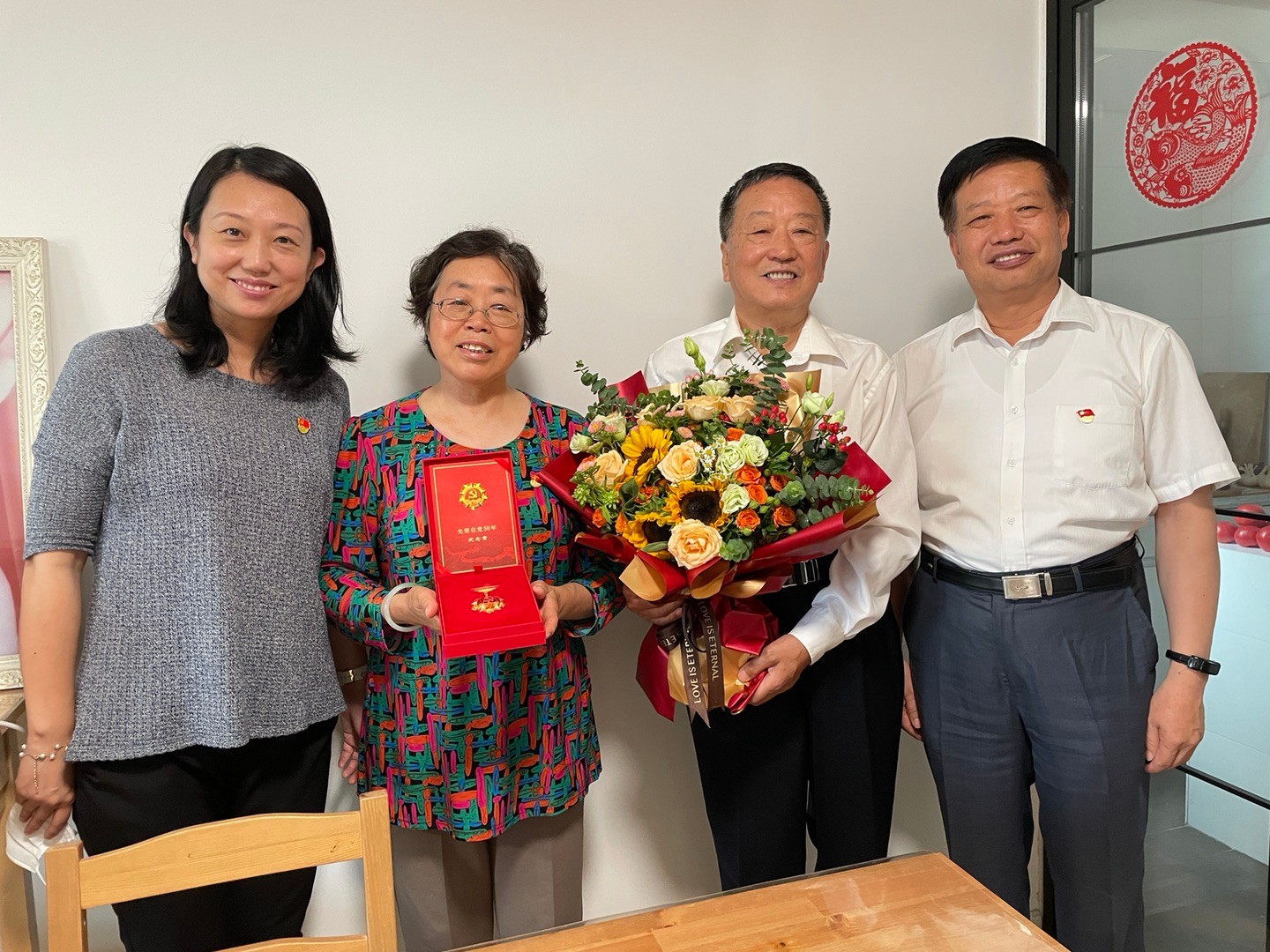 在庆祝中国共产党成立100周年之际,为了传递党的温暖,进一步增强老党员的荣誉感、归属感和使命感,弘扬老一辈共产党员英勇顽强甘于奉献的革命精神,6月25日,护理学院党委副书记安道彩同志带领党政办公室主任和退休党支部书记,前往老党员家中开展走访慰问,并向他们及离世老党员家属送去“光荣在党50年”纪念章,送去学院党委和广大师生的诚挚问候和崇高敬意。