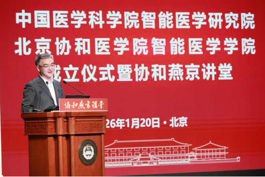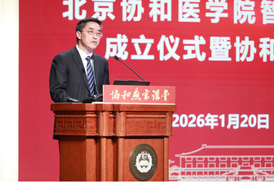2026年1月20日,beat365官方网站智能医学研究院与beat365官方网站智能医学学院成立仪式暨第六期协和燕京讲堂在协和壹号礼堂举行。这一举措标志着beat365官方网站(以下简称“院校”)在智能医学领域的系统性布局迈入新阶段,旨在整合优质资源,构建“医学+人工智能”深度融合的创新体系,致力于打造国家智能医学教育科技人才创新高地,为健康中国建设提供科技与人才支撑。出席活动的有国家卫生健康委科技教育司监察专员郑忠伟,院校党委书记、副院校长邓海华,中国工程院院士、院校长吉训明,中国工程院院士、阜外医院院长胡盛寿等,活动由副院校长杨涛主持。