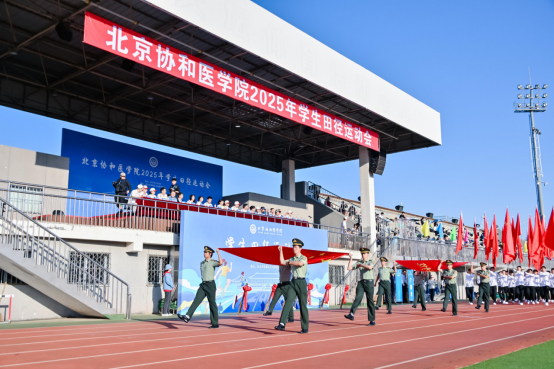 晨光熹微,秋意渐浓,协和学子们的蓬勃朝气驱散了季节的微寒。上午七时四十五分,在一片期待与欢腾中,学生田径运动会开幕式正式拉开帷幕。庄严的国旗护卫队率先引领,红旗方队、裁判员队伍与各培养单位的运动员方阵紧随其后,他们身着统一的服装,步伐坚定有力,展现出协和人特有的严谨与活力。各代表队的入场表演创意纷呈,巧妙融入了医学元素与青春风采,引得看台上掌声与欢呼声不断。升旗仪式肃穆而神圣,高昂的旋律激荡着每个人的爱国情怀与拼搏决心。开幕式上洋溢着团结、健康、向上的热烈氛围,充分展现了协和人的精神面貌。