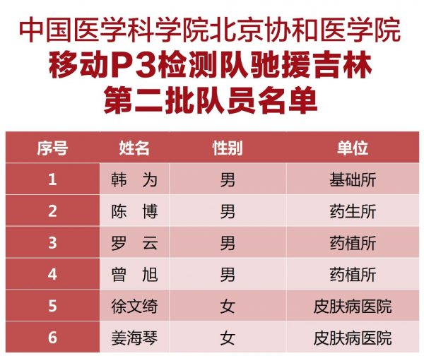 此次增援的6名队员分别来自基础所、药植所、药生所和皮研所。其中在京的4名队员和皮研所2名队员分别从北京和南京出发,在到达吉林后,将与5月19日抵达的第一批队员一起共同承担新冠病毒核酸样本检测任务。