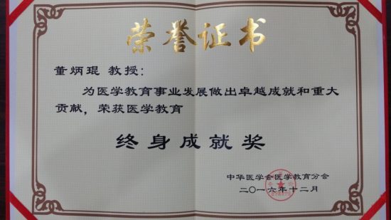 原副院校长董炳琨同志获医学教育“终身成就奖”