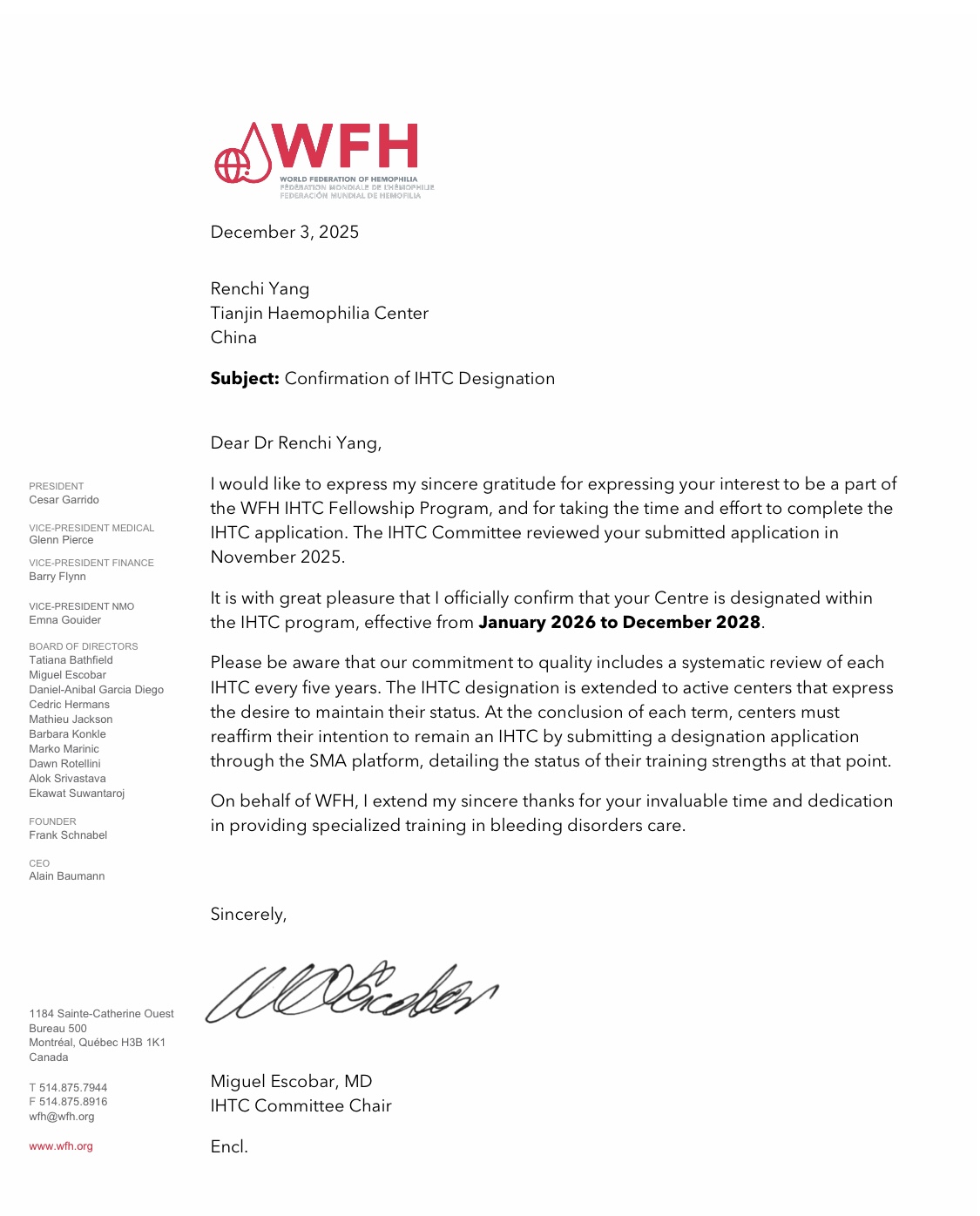 血液病医院血栓止血诊疗中心/天津血友病中心获得世界血友病联盟国际血友病培训中心认证