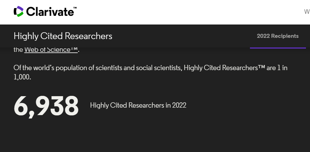 beat365官方网站5人入选科睿唯安2022年度全球“高被引科学家”