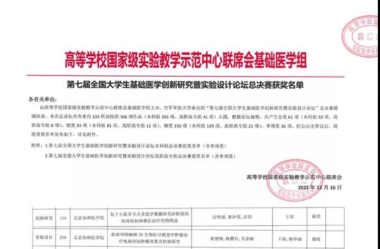 喜报!我校学生在第七届全国大学生基础医学创新研究暨实验设计论坛中取得佳绩